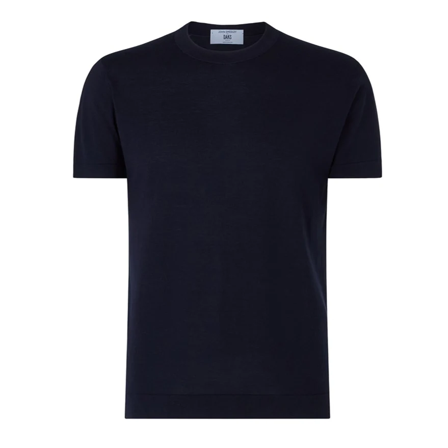DAKS X JOHN SMEDLEY HOUSE STRIPE T SHIRT - NAVY