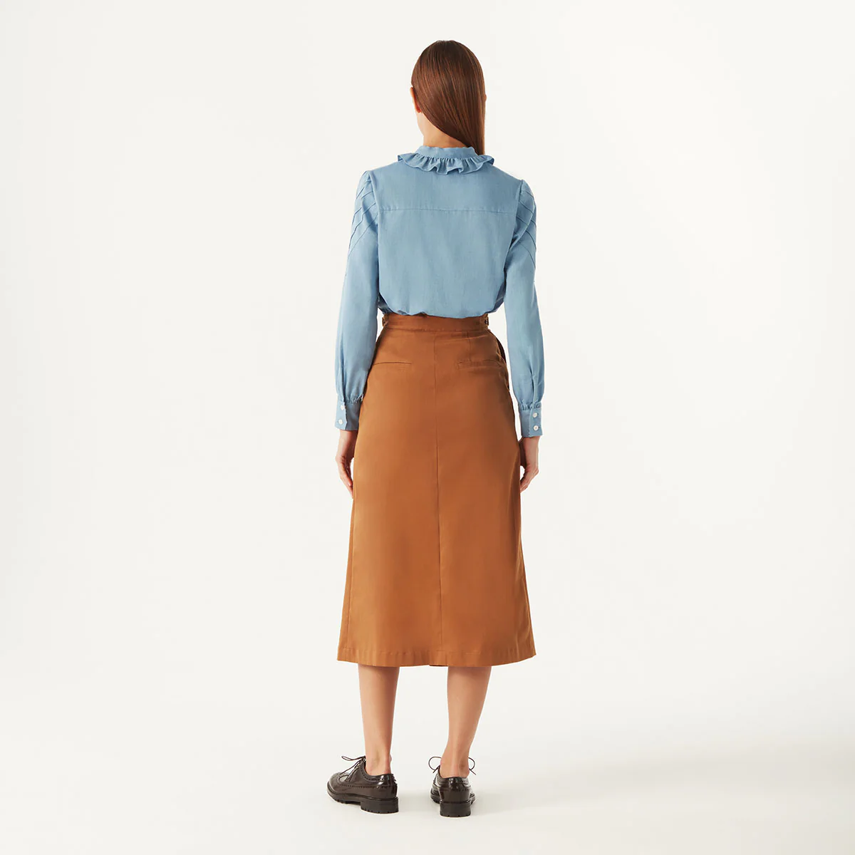 The Eros Blouse is an off-duty essential, cut for a relaxed and contemporary silhouette. Made from 100% Cotton, the Eros Blouse comes in the colour blue and features a ruffled neckline, neck-tie and panel stitched shoulder detailing. The Eros Blouse boasts a flattering, yet contemporary fit and can be worn as smart-wear or in a more casual setting.